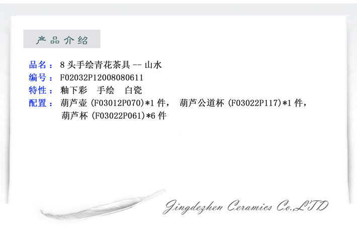 8頭手繪青花茶具--山水