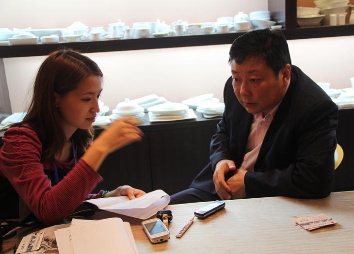 中國(guó)日?qǐng)?bào)社記者在采訪公司董事長(zhǎng)王耀先生