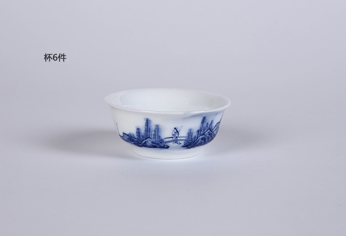 8頭手繪青花茶具--山水